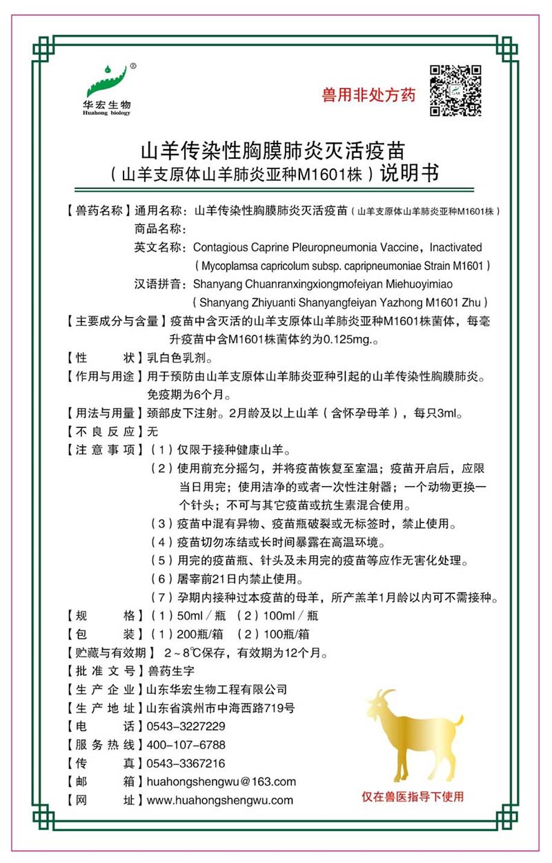 作用與用途:用于預防由山羊支原體山羊肺炎亞種引起的山羊傳染性胸膜肺炎