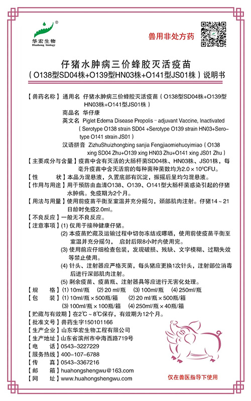 仔豬水腫病三價(jià)蜂膠滅活疫苗